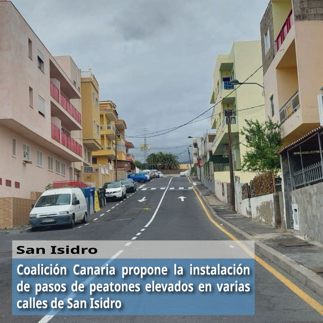 Coalición Canaria de Granadilla de Abona propuso la instalación de pasos de peatones elevados y lomos de asno en varias calles de San Isidro, concretamente en las vías La Vera y Deportes, así como en aquellas que cuenten con un informe favorable de la Policía Local del municipio de Granadilla de Abona.