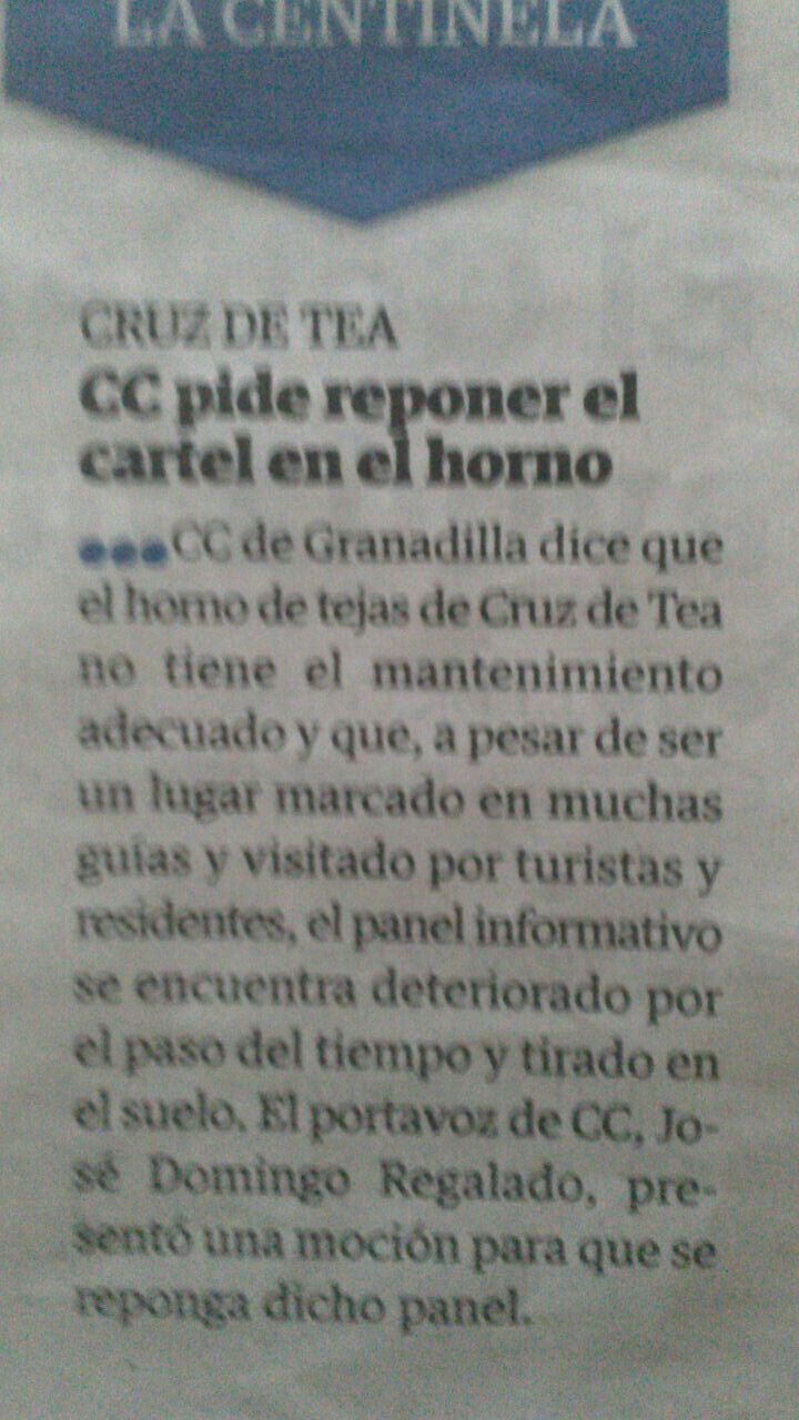 En la edición del martes 19 de agosto de 2014, aparecía en El Día, nuestra denuncia sobre el mal estado del panel informativo ubicado en el horno de tejas de la Cruz de Tea. A continuación les dejamos el recorte de prensa.