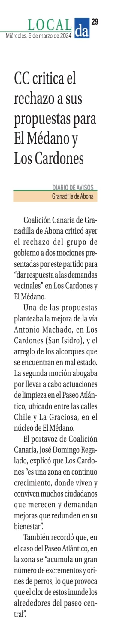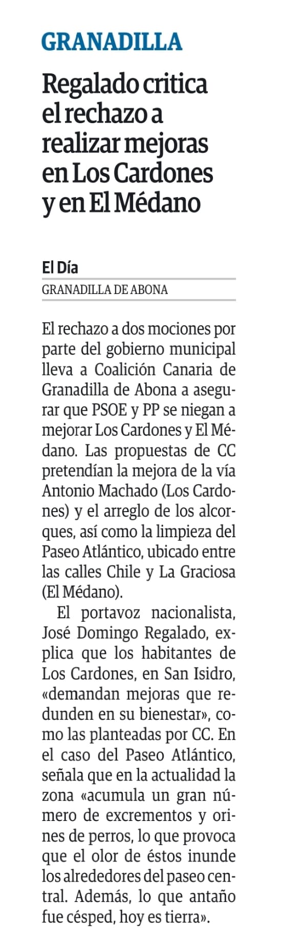 El portavoz de Coalición Canaria en el municipio, José Domingo Regalado, manifiesta que “la materialización de esta noticia supondrá un error histórico para nuestro municipio. Una mala decisión que perjudicará al presente y futuro de nuestros estudiantes y sus familias”.