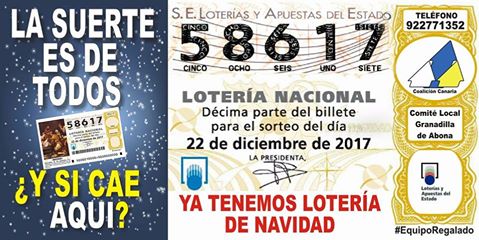 Ya tenemos en nuestro poder el número con el que jugaremos a la Lotería de Navidad en Coalición Canaria Granadilla de Abona. Ponte en contacto con nosotros en nuestra sede o a través de las Redes Sociales si quieres adquirir uno. No te quedes sin el tuyo.