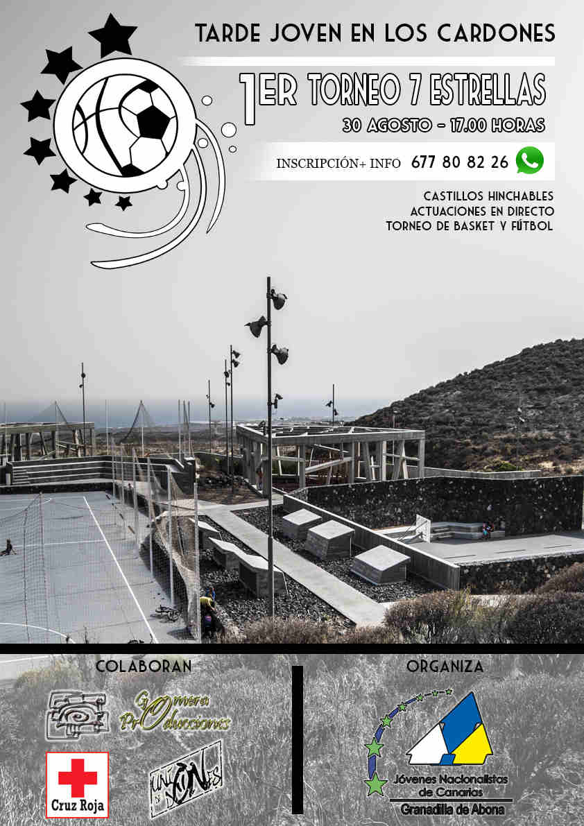 Coalición Canaria de Granadilla Abona organizará ‘La tarde joven en Los Cardones’, el próximo sábado 30 de agosto de 2014, a partir de las cinco de la tarde. El parque de Los Cardones, ubicado en San Isidro, acogerá actuaciones musicales, castillos hinchables y el ‘Primer Torneo 7 Estrellas’ de fútbol sala y baloncesto.