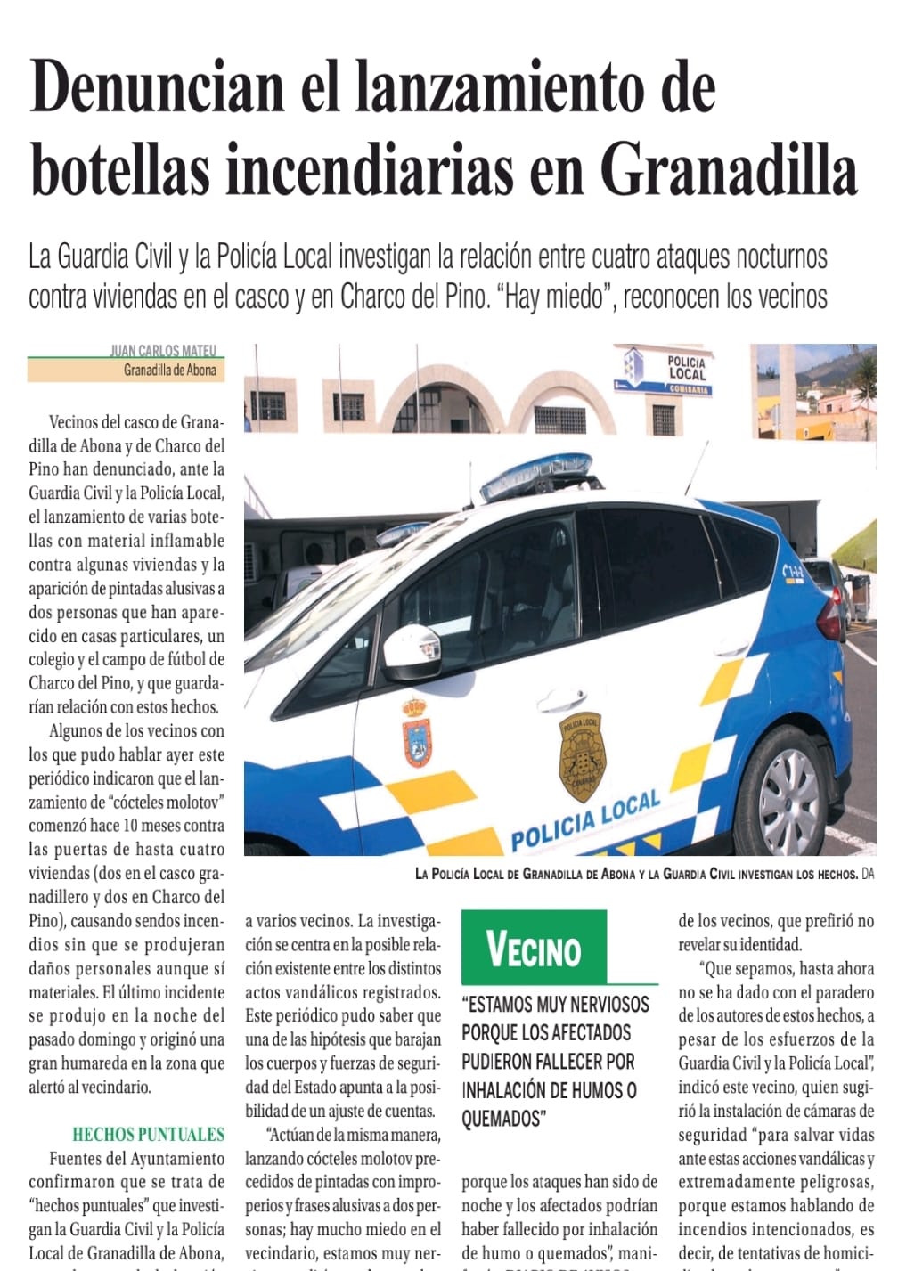 Los nacionalistas critican la gestión del actual gobierno de Granadilla compuesto el PSOE y PP que adeudan más de 60.000 euros a los agentes de policía. El portavoz de CC, José Domingo Regalado, lamenta que “el retraso en el pago de los servicios prestados por la Policía Local se está convirtiendo en habitual, ya que hasta hace poco se le adeudaban 6 meses y alrededor de 100.000 euros”